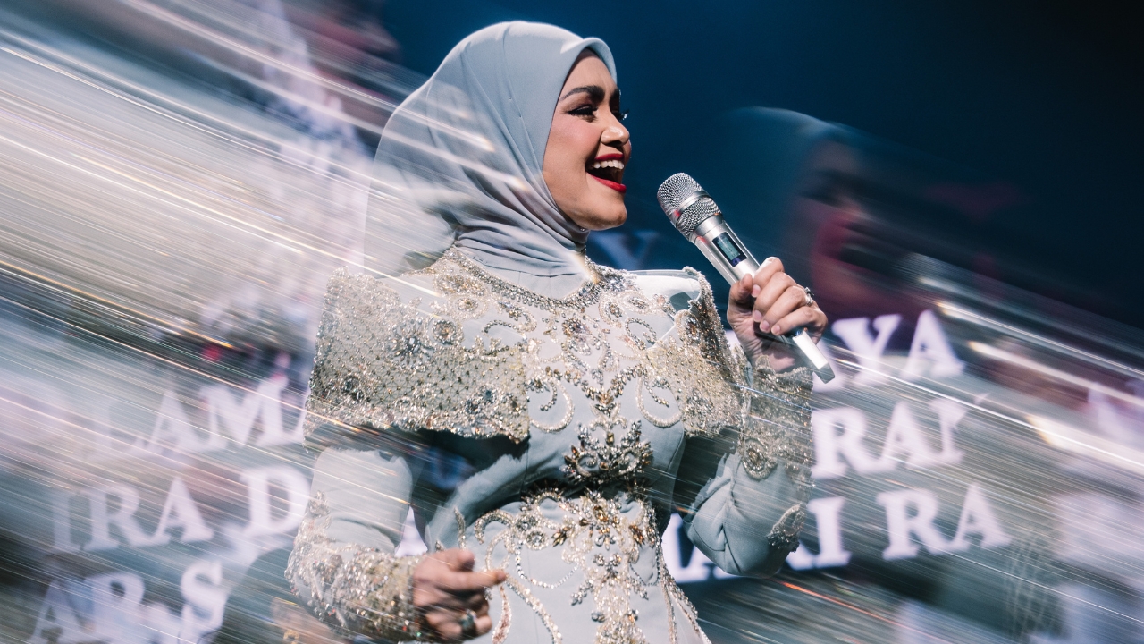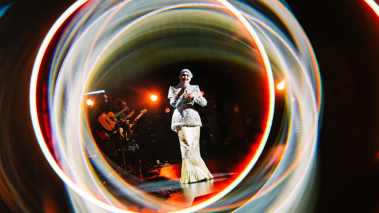 Di atas panggung, dengan dua persalinan busana ; satu merah jambu dan set kedua biru cair, bukan tentang pakaian Siti sahaja yang menangkap perhatian, tapi tentulah pesona biduanita negara yang tidak pernah redup itu.