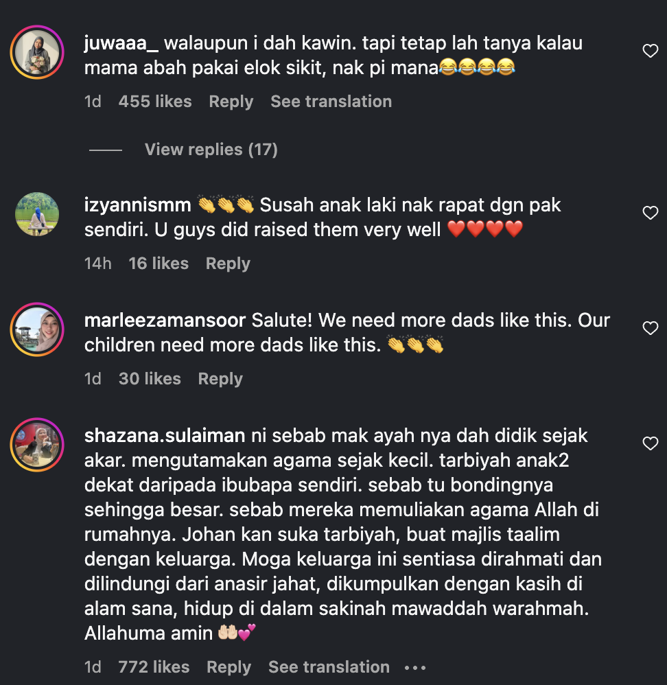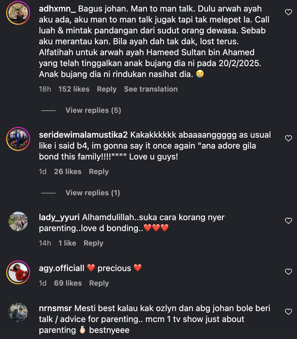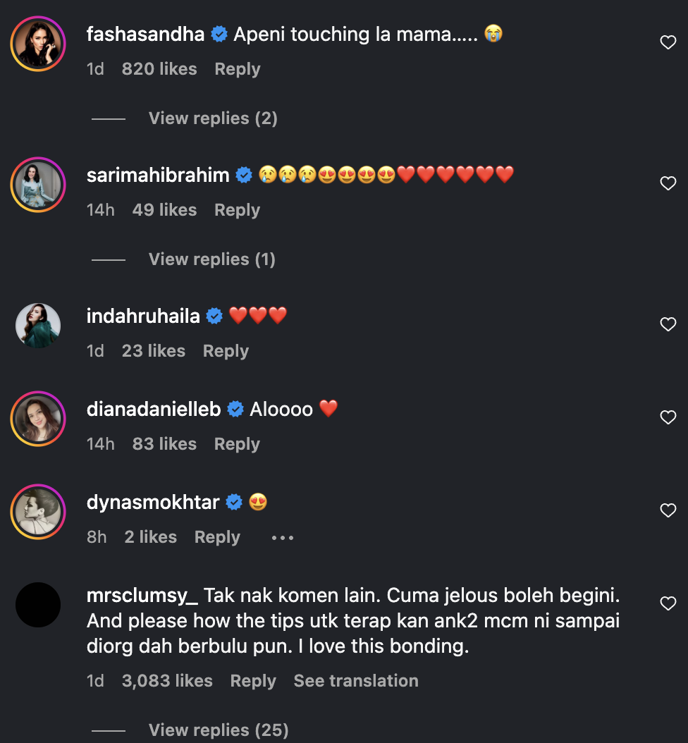 Menjengah ke ruangan komen rata-rata rakan artis dan peminat sebak melihat momen kekeluargaan yang dianggap erat.