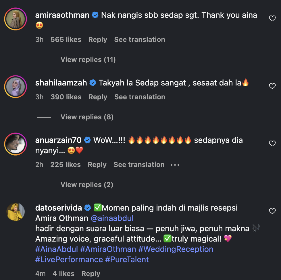 Menerusi hantaran di Instagram miliknya, pelantun lagu Sesaat itu bukan sahaja menerima pujian daripada peminat malah rakan-rakan seindustri antaranya Anuar Zain dan Shila Amzah.