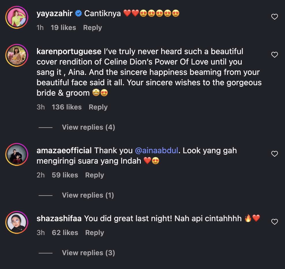 Penyanyi, Aina Abdul menyorot perhatian netizen selepas tampil membuat persembahan di majlis resepsi pasangan selebriti, Fattah Amin dan Amira Othman pada Ahad.