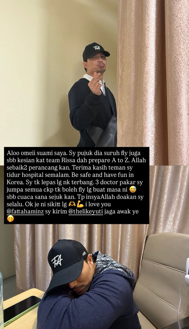 "Terima kasih teman saya tidur hospital semalam. Hati-hati dan have fun in Korea. Saya tak lepas nak terbang,” tulisnya.