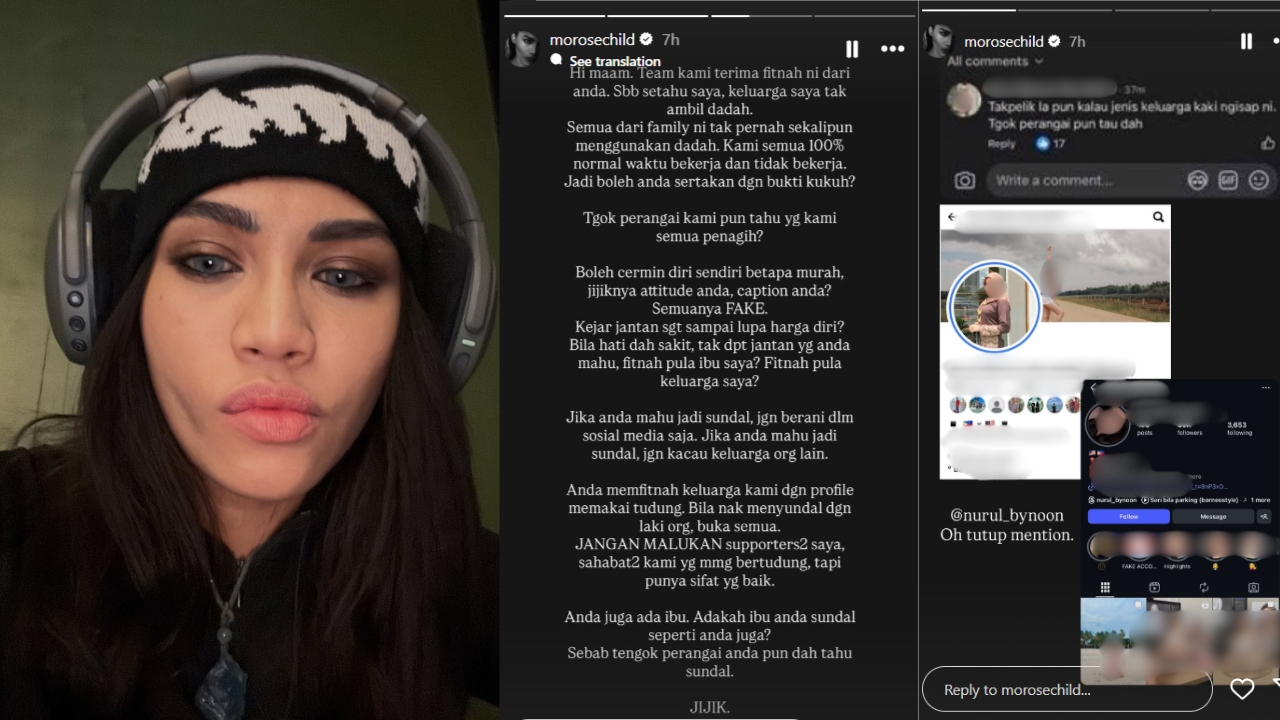 “Anda memfitnah keluarga kami dengan profil memakai tudung. Bila nak menyundal dengan laki orang, buka semua. Jangan malukan supporters saya, sahabat-sahabat kami yang memang bertudung tapi punya sifat yang baik.