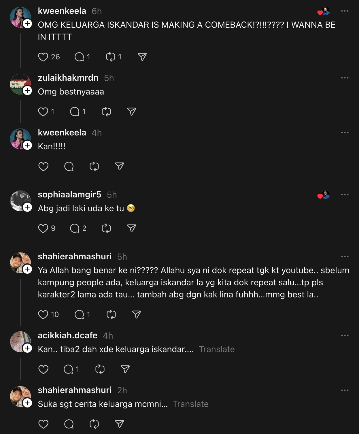 Menjengah ke ruangan komen, rata-rata warganet meluahkan rasa tidak sabar untuk menonton siri itu dan mengharapkan agar semua pelakon asal turut serta.