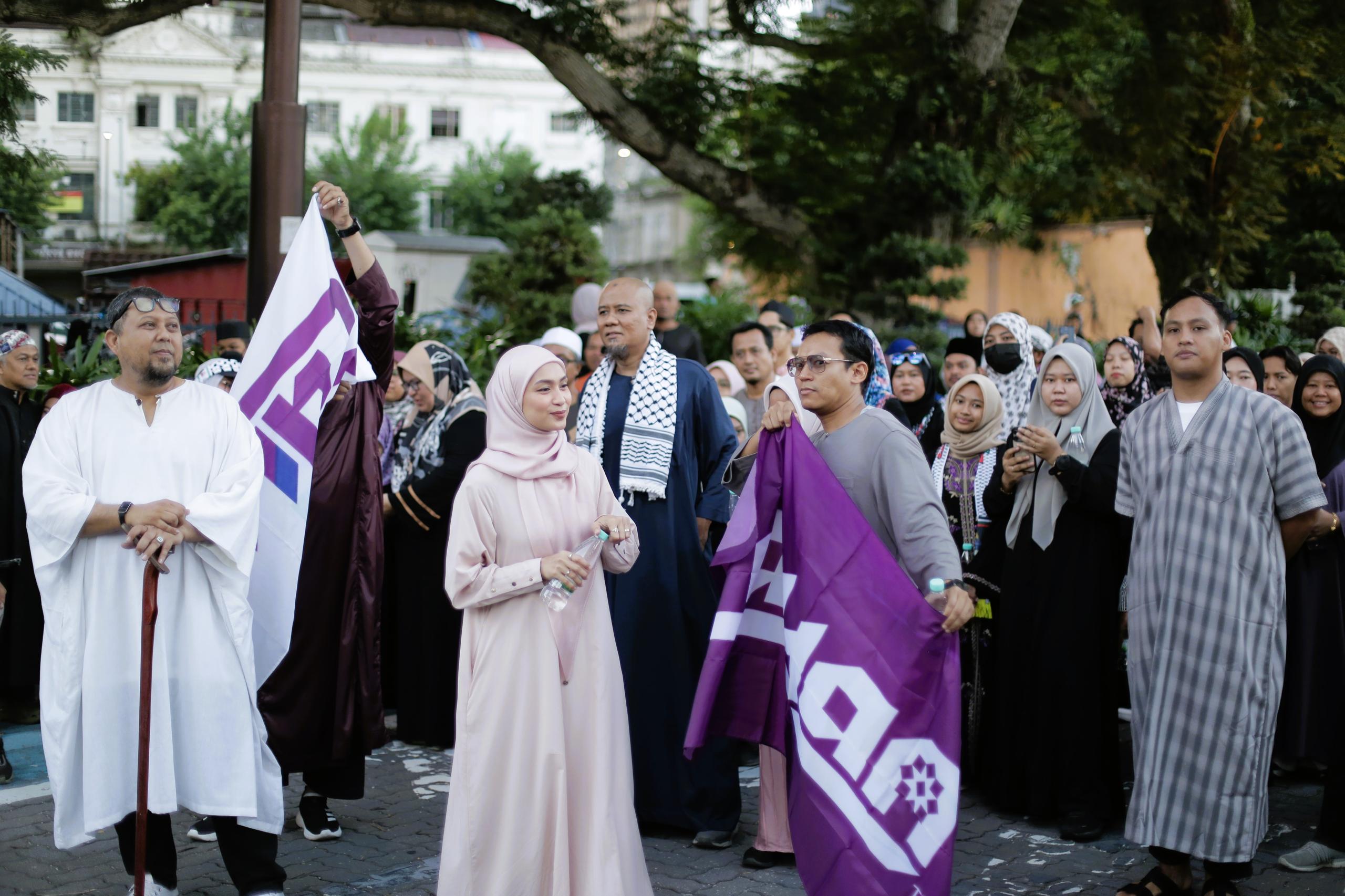 Menariknya, para peserta hadir dengan berpakaian jubah, mencerminkan identiti Muslim yang sederhana dan berwibawa, sambil menyertai aktiviti berjalan kaki secara santai.