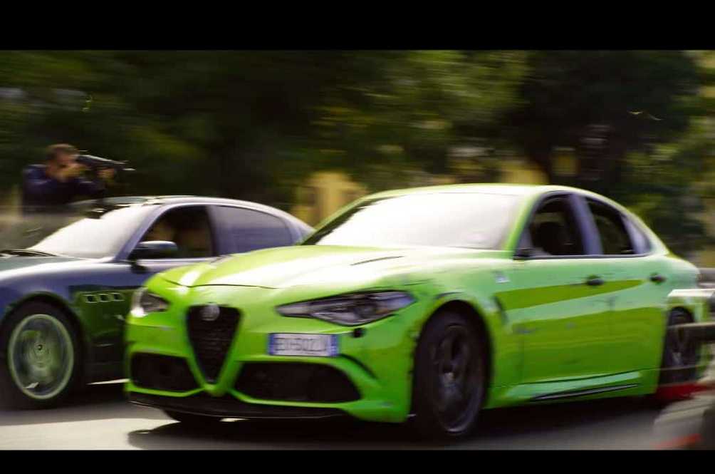 Next to Reynolds, the four-wheeled protagonist would be the lime green Alfa Romeo Giulia Quadrifoglio that has a hydraulic handbrake to kick the rear end out in getaway situations. The only difference is that the hydraulic lever isn’t hidden. Dave Franco plays the role of over-enthusiastic getaway driver perfectly and is filmed yanking the lever to make the rear come about and execute tight turns.