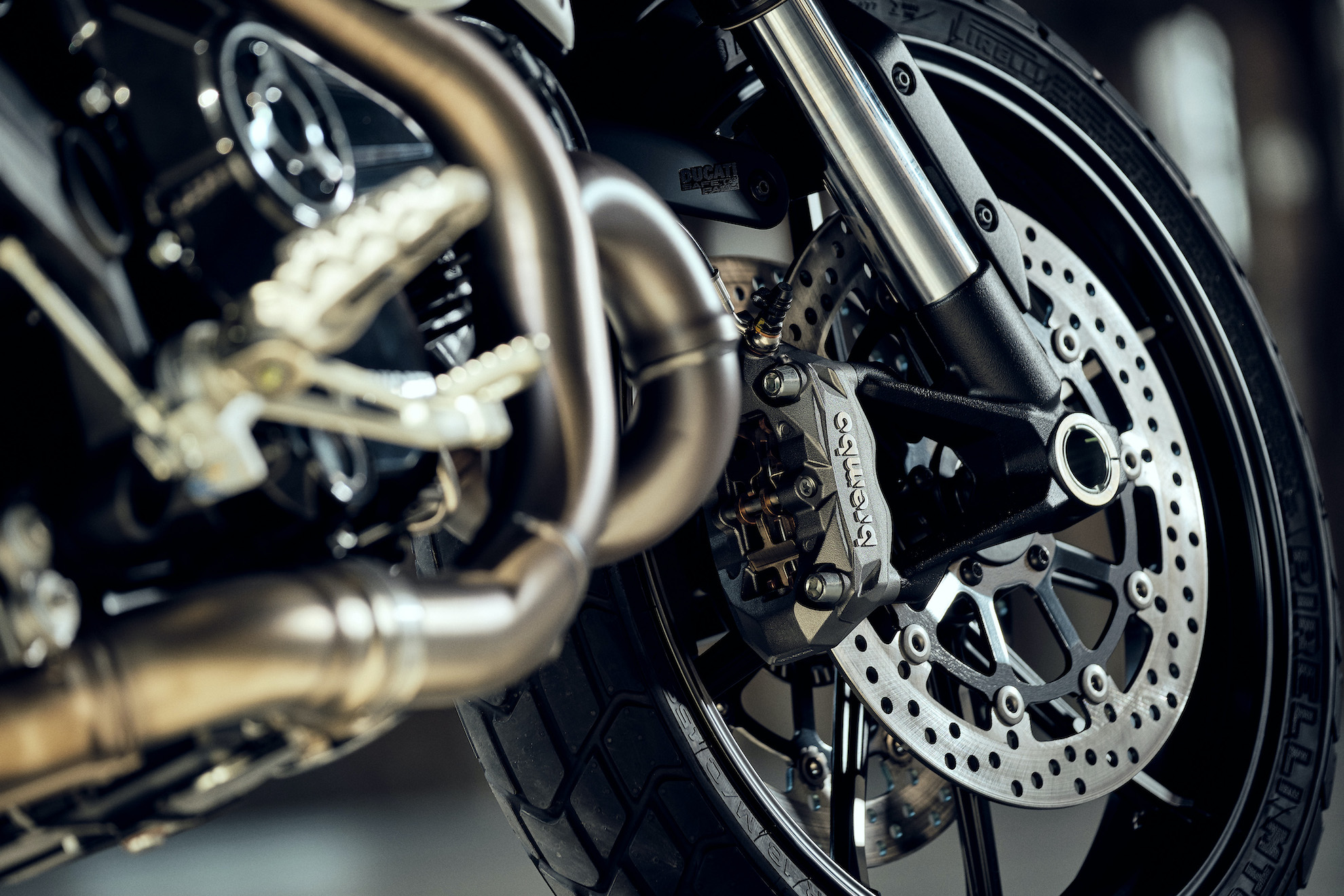 Keeping the big 1100 Dark Pro in check is the Ducati Traction Control (DTC) system which has been specially calibrated for this model. Besides, the three standard Riding Modes (Active, Journey and City) also help less experienced motorcyclists to find the right balance of riding styles. Brakes are two 320mm semi-floating disc with a Brembo M4.32 four-piston callipers up front, while rear brakes are a single 245mm disc with a one-piston floating calliper. Bosch ABS cornering system will come as standard to guarantee maximum performance in all corners while ensuring the riders own safety.