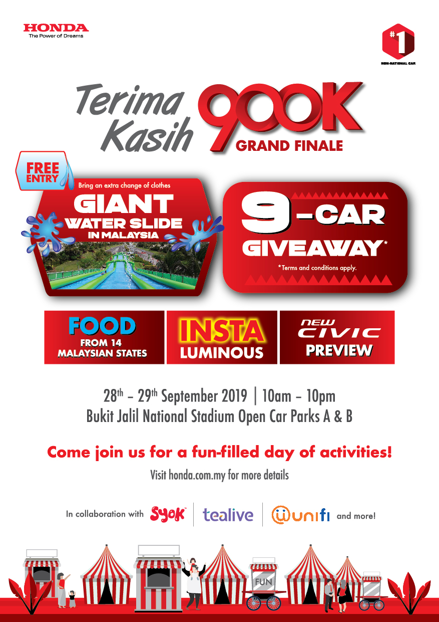 “In July 2019, we launched the “Road to 900,000th Unit Milestone Campaign” with the tagline “Terima Kasih 900K”, to thank Malaysians for their unwavering support towards Honda Malaysia by giving away nine Honda models as a reward. I am pleased to note that the giveaway campaign is getting active participation from customers nationwide,” said Honda Malaysia Managing Director and Chief Executive Officer, Toichi Ishiyama.