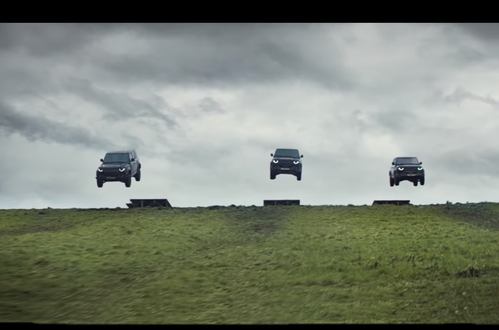 Like all ads, there’s some camera play at work as the launch itself would probably break a Defender but a little clever editing creates the impression that it nailed the rough landing nonetheless and drove off into the sunset.