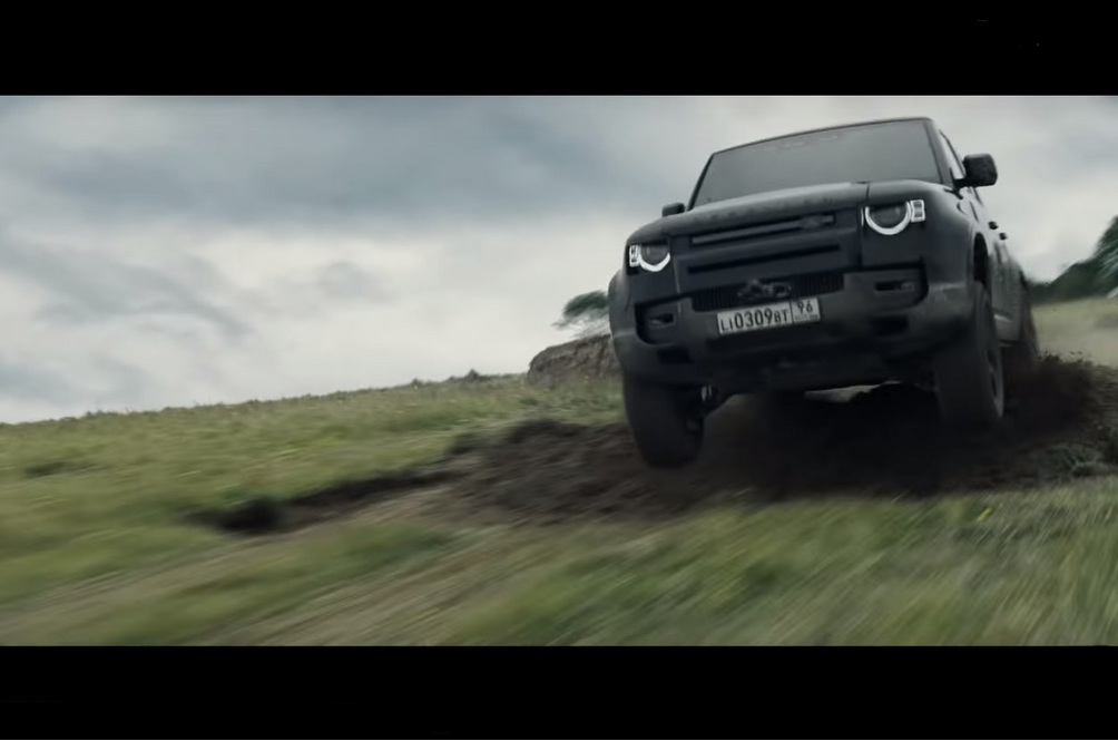 In this Defender ad shaped to resemble a behind-the-scenes look at the movie’s action sequences, we see a trio of Defenders and a further three Triumph Scrambler-based bikes launch into the air on ramps and basically drive full-bore on surfaces that would break anything else.
