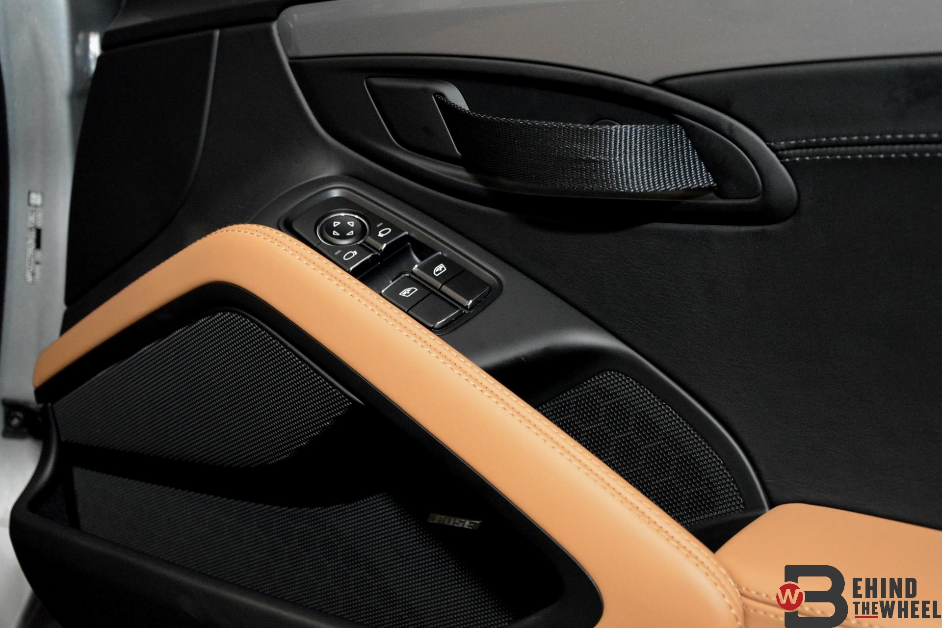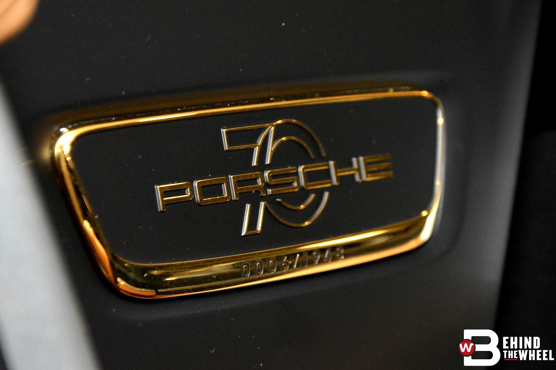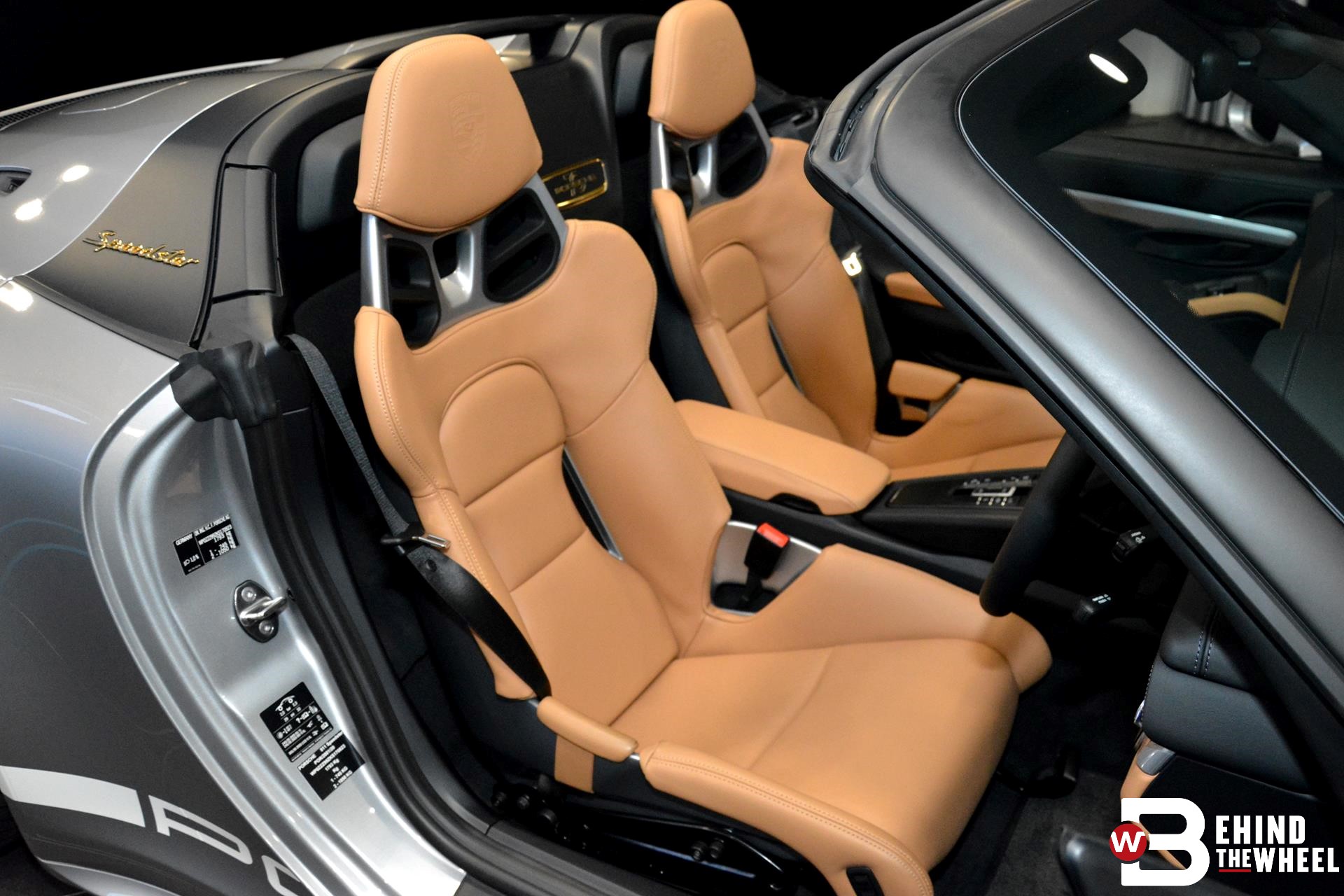 7. Speaking of those badges, they do look pretty special in gold detailing. It’s all part of the Heritage Design Package comprising the gorgeous cognac leather full buckets, the aforementioned gold detailing for the badging and the historic Porsche crests on the frunk that’s a sticker in the name of weight-saving. Oh, and those tacky 1950s-inspired racing decals; we’re not fans of that. If you opt for the package, the car can only be had in GT Silver in accordance with the classic 356 Speedster. An emblem between the seats carries the serial number of the car.