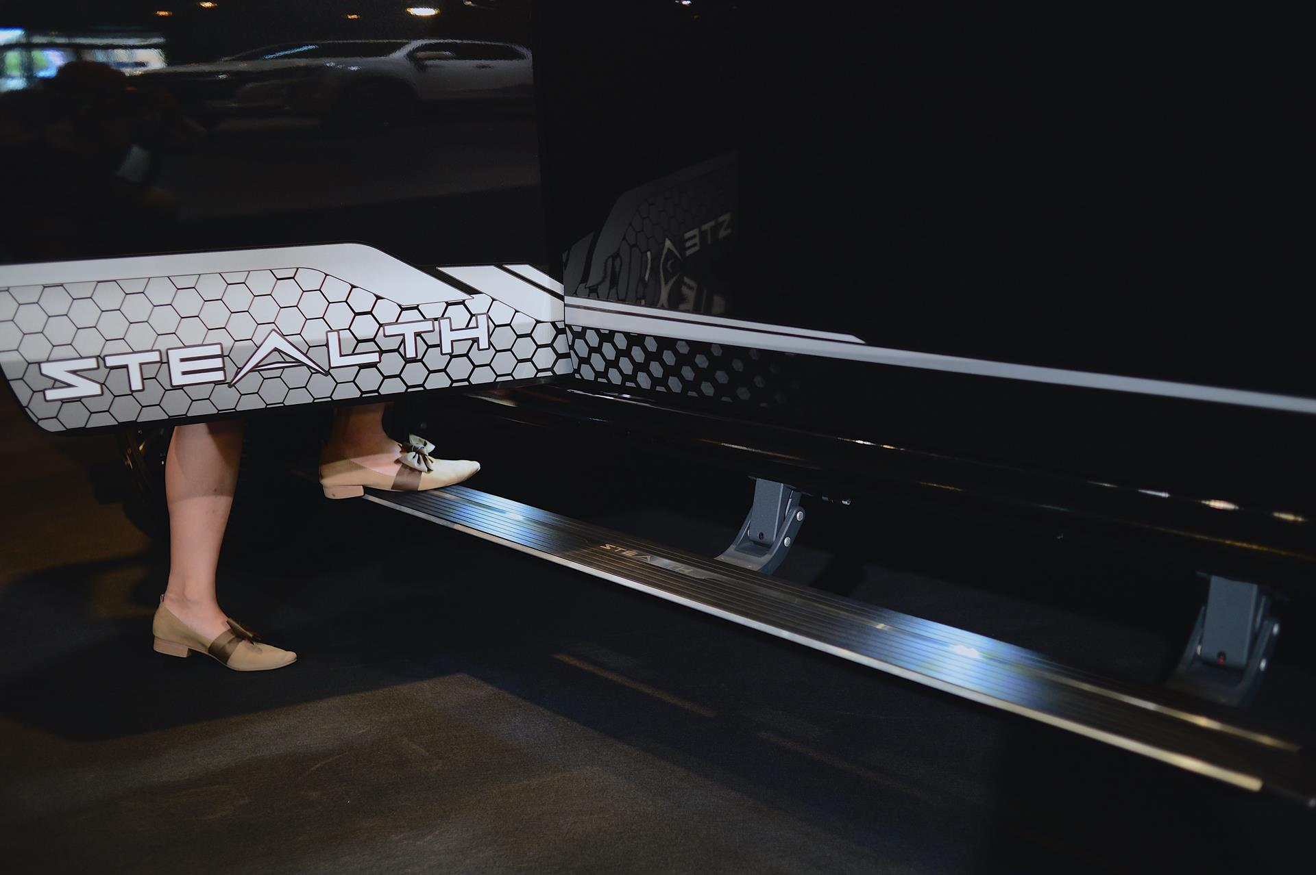 Put a foot on the Power Step and ease into the cabin that’s trimmed in a red and black combo with Stealth stitched onto the seats. Piano black finished is applied on the interior bits over the regular matte silver while the headliner has been given the blacked-out treatment as well.