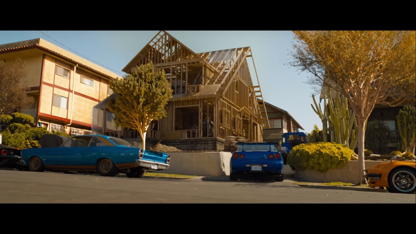 Let the tears flow as you see the house number 1327 from the first movie being rebuilt after it was blown up in the last movie. The unofficial headquarters of the familia, there’s a Bayside Blue Nissan Skyline R34 GTR pulling up in the driveway; one of Paul’s favourite cars that he drove in the franchise.