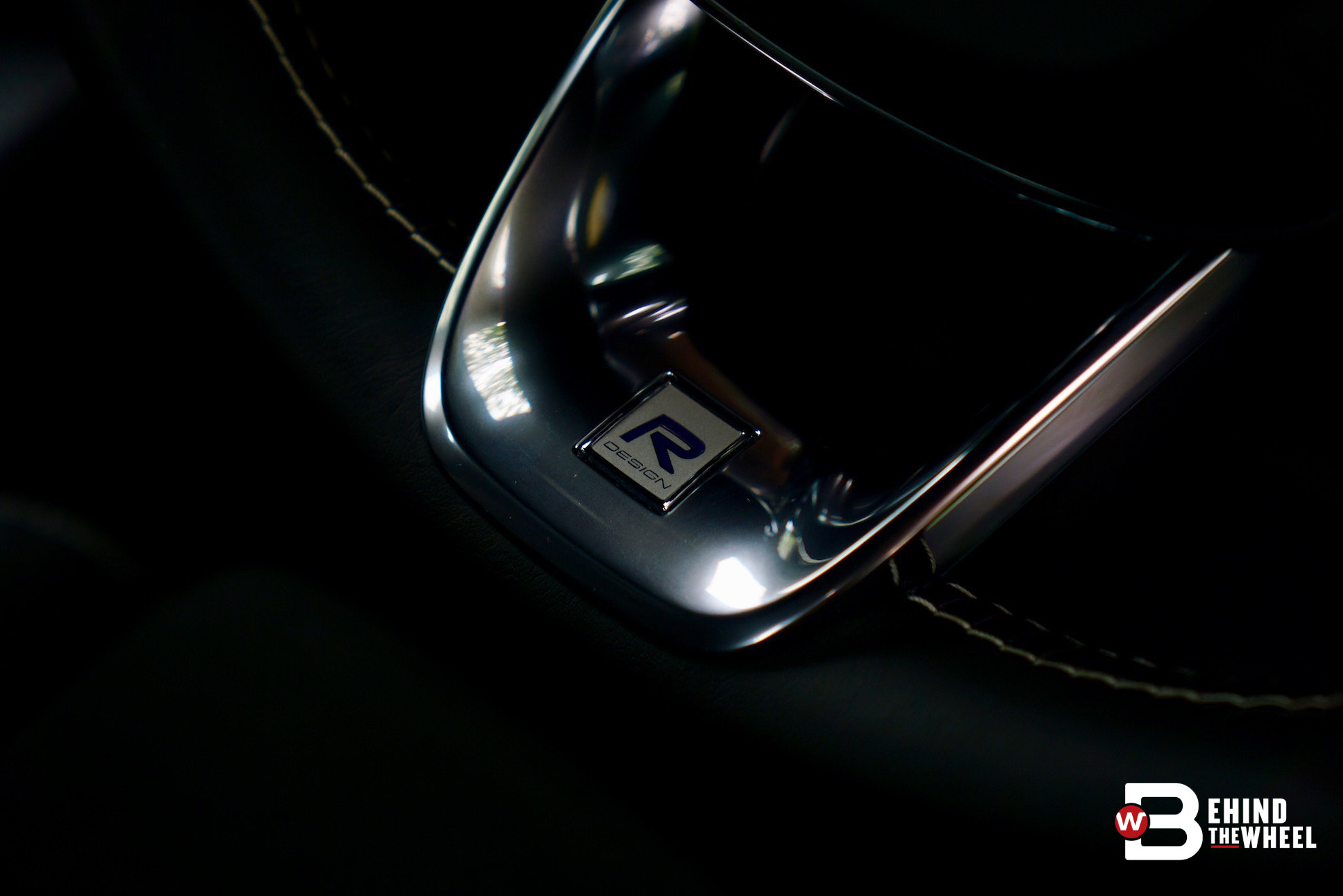 The interior is spacious, airy and premium. And sporty too, thanks to the R-Design ornamentations peppered tastefully to not make it shouty. From the list of R-Design equipment in here, one stands out. The R-Design Cutting Edge Décor Inlay, which is the curved panel that cuts horizontally across the dashboard. In daylight, it adds lustre to what would otherwise be a plain interior. It gets better at night when the interior mood lighting hits the aluminium inlays to make it appear holographic, which is really cool.