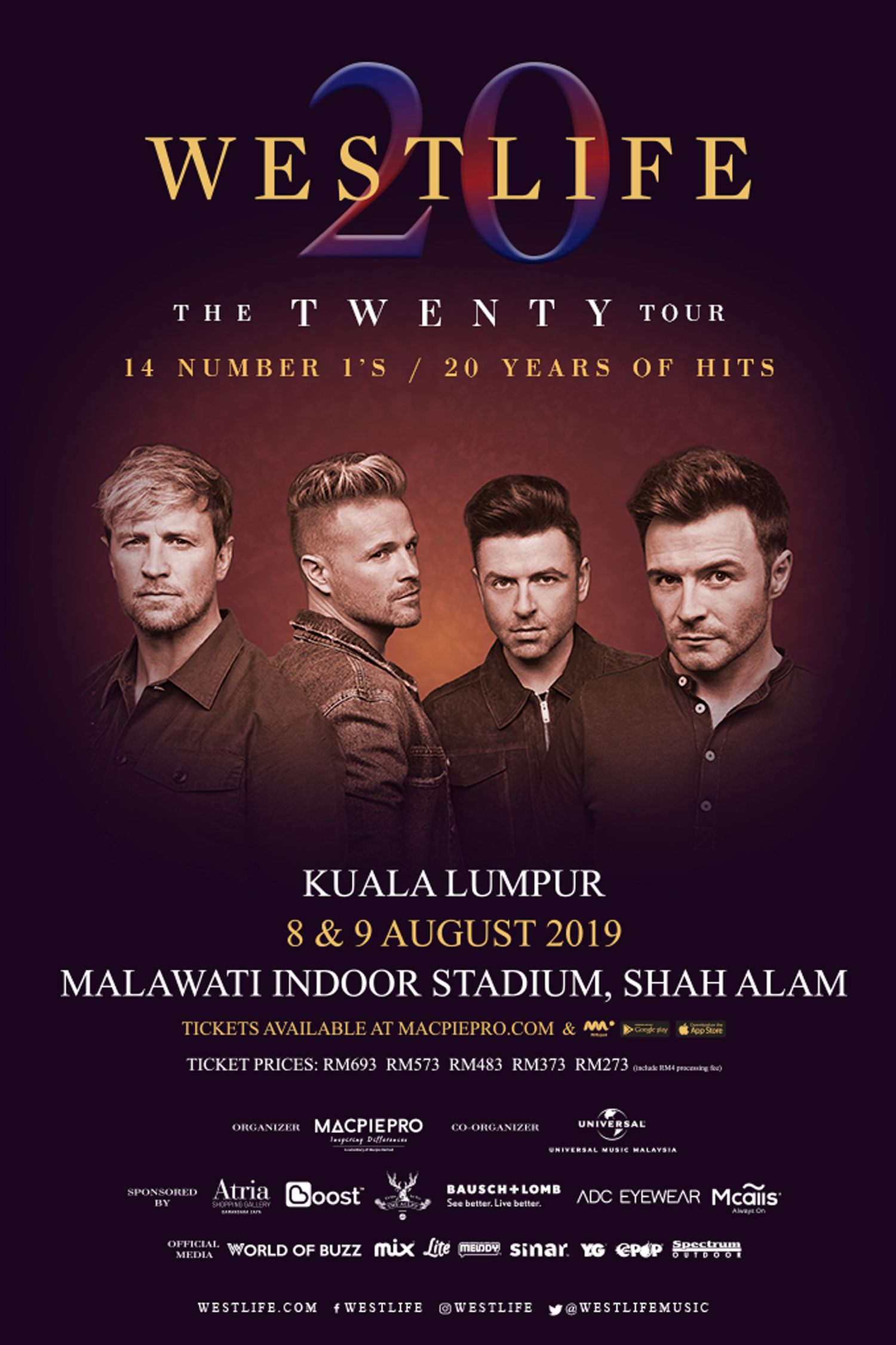 They will be performing 'The Twenty Tour 2019 Live in Malaysia' at the Malawati Indoor Stadium, Shah Alam on 8 and 9 August.