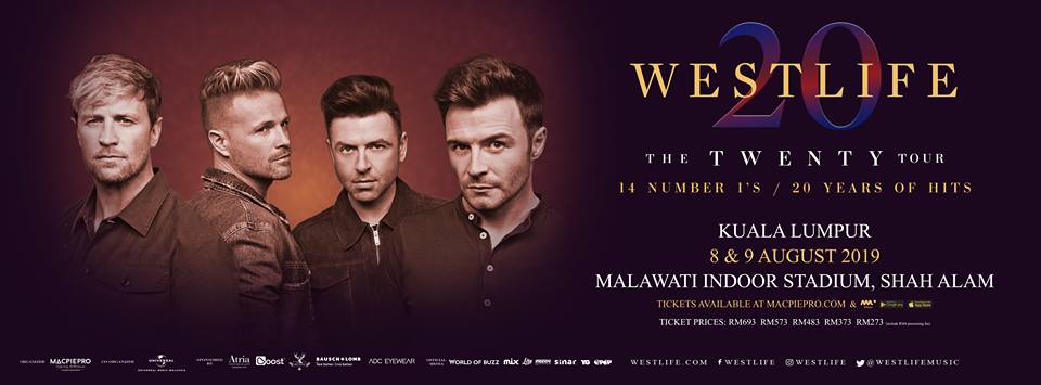 The band, represented by Shane Filan, Nicky Byrne, Kian Egan and Feehily, will be performing in Malaysia at the Malawati Indoor Stadium, Shah Alam on 8 and 9 August as part of their 'The Twenty Tour'.