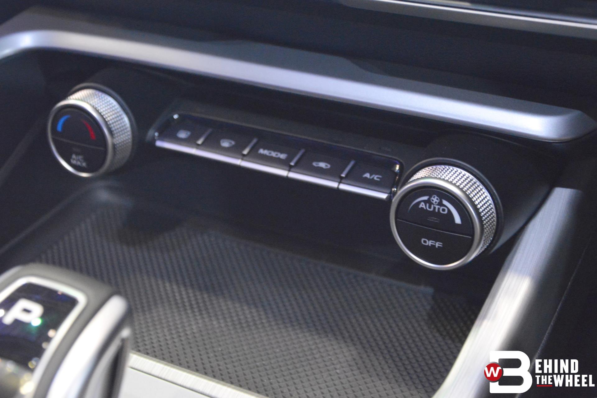 At the rear, you’ll notice the quad exhaust tips that poke out from the faux carbon fibre on the diffuser. Squint a little and you’ll see the turbine-inspiration for the wheels that measure in at 18-inches on the two highest trims; Premium and Flagship, and wear 215/55R18 rubbers.