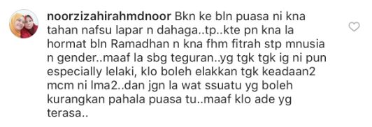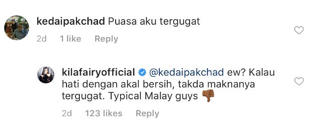 “Puasa aku tergugat” tulisnya ringkas. Komen tersebut kemudiannya dibalas oleh Kila.