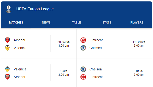 Eintracht Frankfurt vs Chelsea, May 3, 3am @ beIN Sports CH837 *TBC*