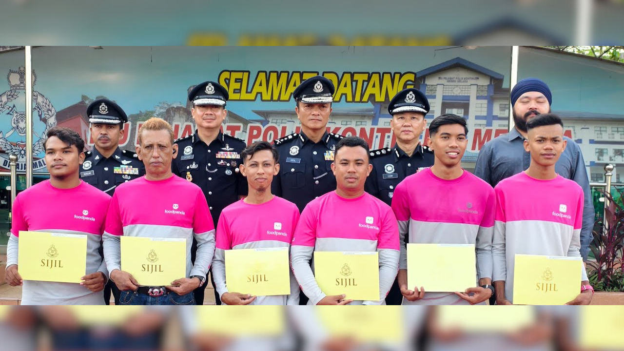 Six Foodpanda riders received a Certificate of Appreciation from the Melaka Police Chief, Datuk Dzulkhairi Mukhtar, after they successfully helped the cops to apprehend a serial snatch thief.