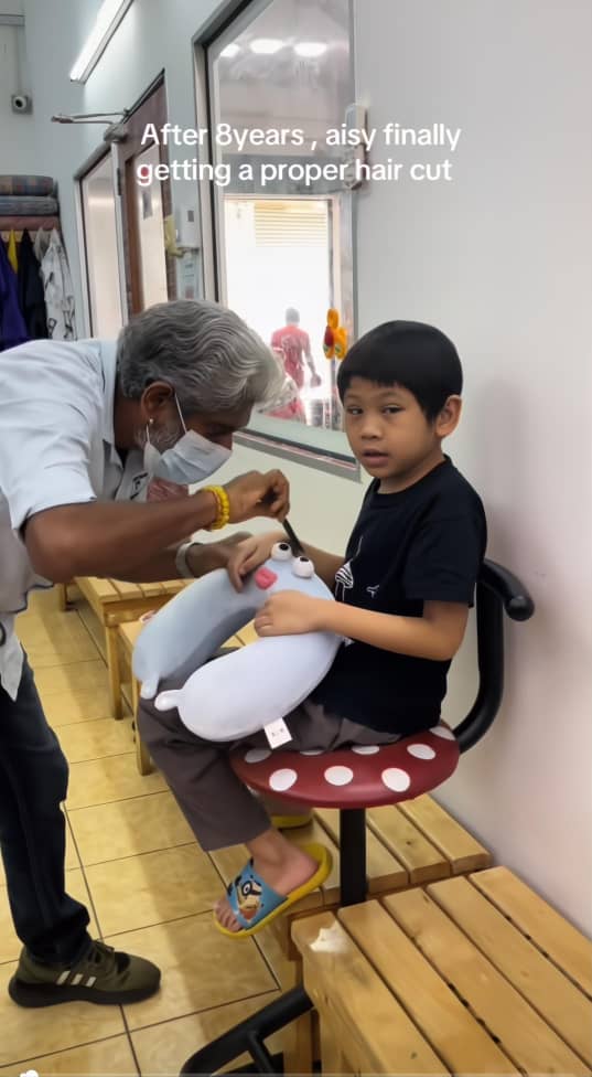 @imashariza Mama dah ada tempat fav baru untuk potong rambut abang … Thank you Mr D sbb santuni anak autism kami ❤️ #autismawareness #autismacceptance #austismhaircut #keletahaisyaryan #aisyaryanjourney ♬ suara asli - Penyair Emosian