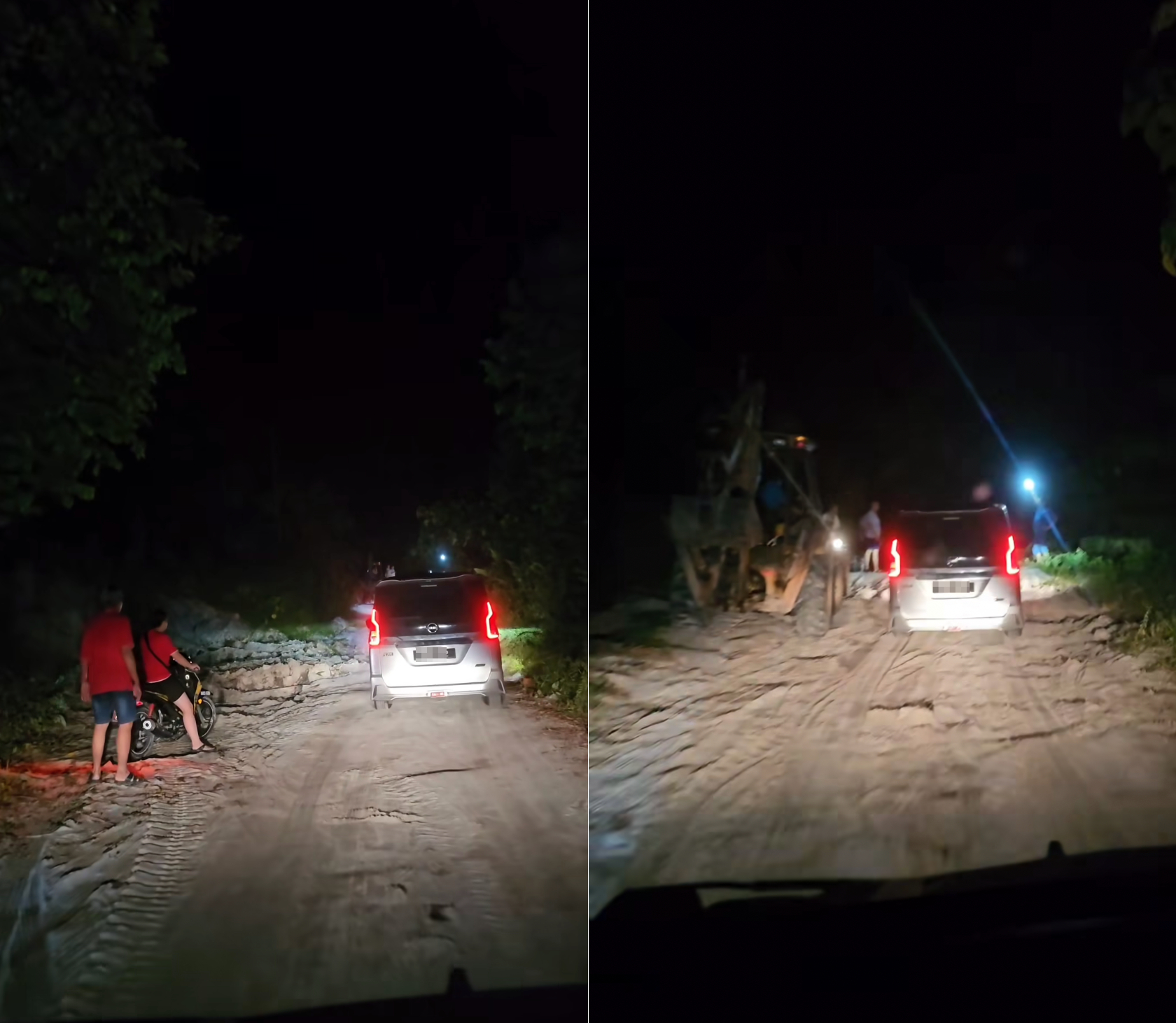 The man said another driver had initially advised him to turn around as the backroad was inaccessible. It was then that a group of Chinese men appeared and told them to wait for a while as they brought a backhoe to fix the road.