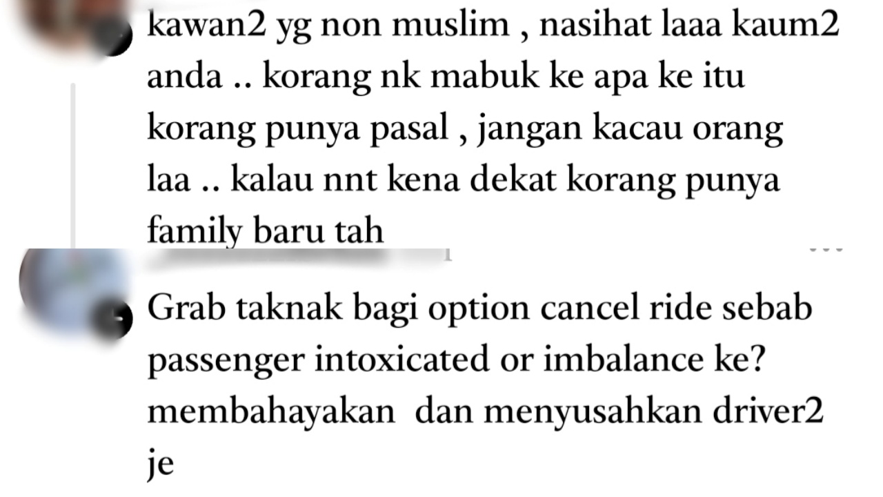 “Non-Muslim friends, can you please advise others that if you want to get drunk, please do so, but don’t disturb others? Don’t allow it to happen to your own family members.”