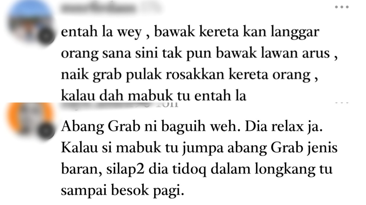 Another said, “Kudos to the Grab driver. He remained very calm. If the drunk passenger had met another driver with a temper, he might have ended up spending the night in a ditch.”