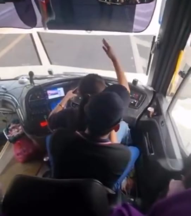 An express bus driver has landed himself in hot water after a video of him driving with a woman sitting on his lap went viral online.