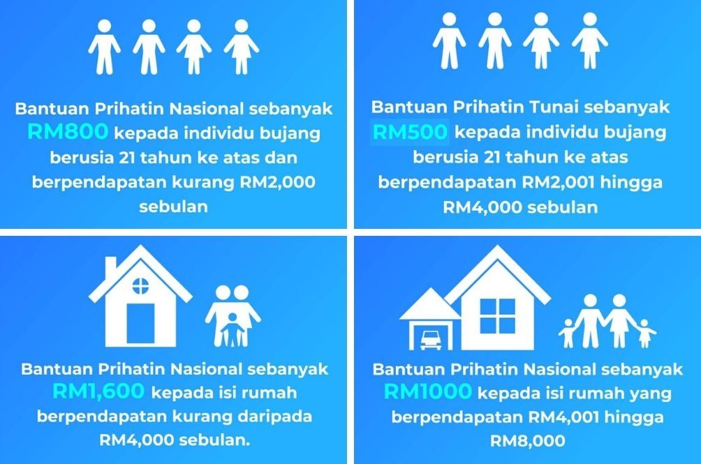 - RM800 for singles aged 21 and above earning less than RM2,000 a month.