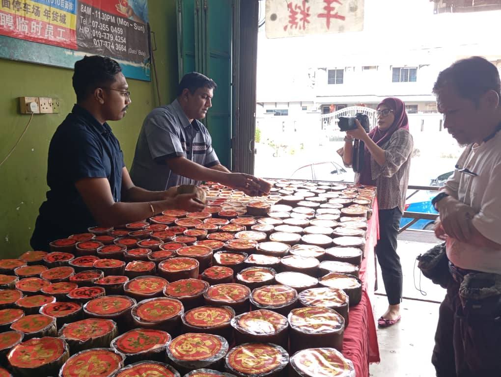Balamurali said that these days, about 64% of the nian gao he makes will be sold at the Chinese New Year Bazaar and his factory in Taman Johor Jaya, while the other 36% will be exported to Singapore.