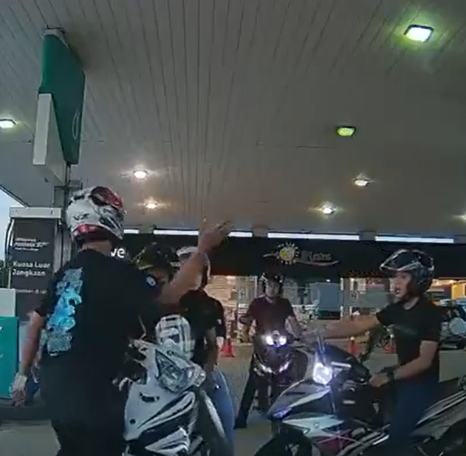 Police are investigating a viral video that shows a motorcyclist being slapped by another individual at a petrol station in Taman Perling in Johor.
