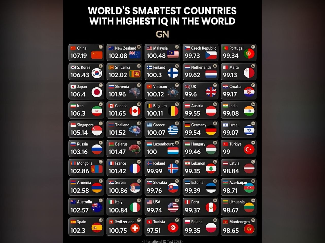 Overall, the list illustrates that Asian and European countries continue to dominate the top positions in global IQ rankings.