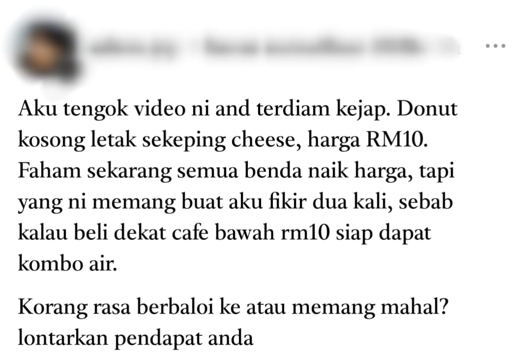 “I was speechless when I watched the video. A plain doughnut with a slice of cheese could cost RM10."