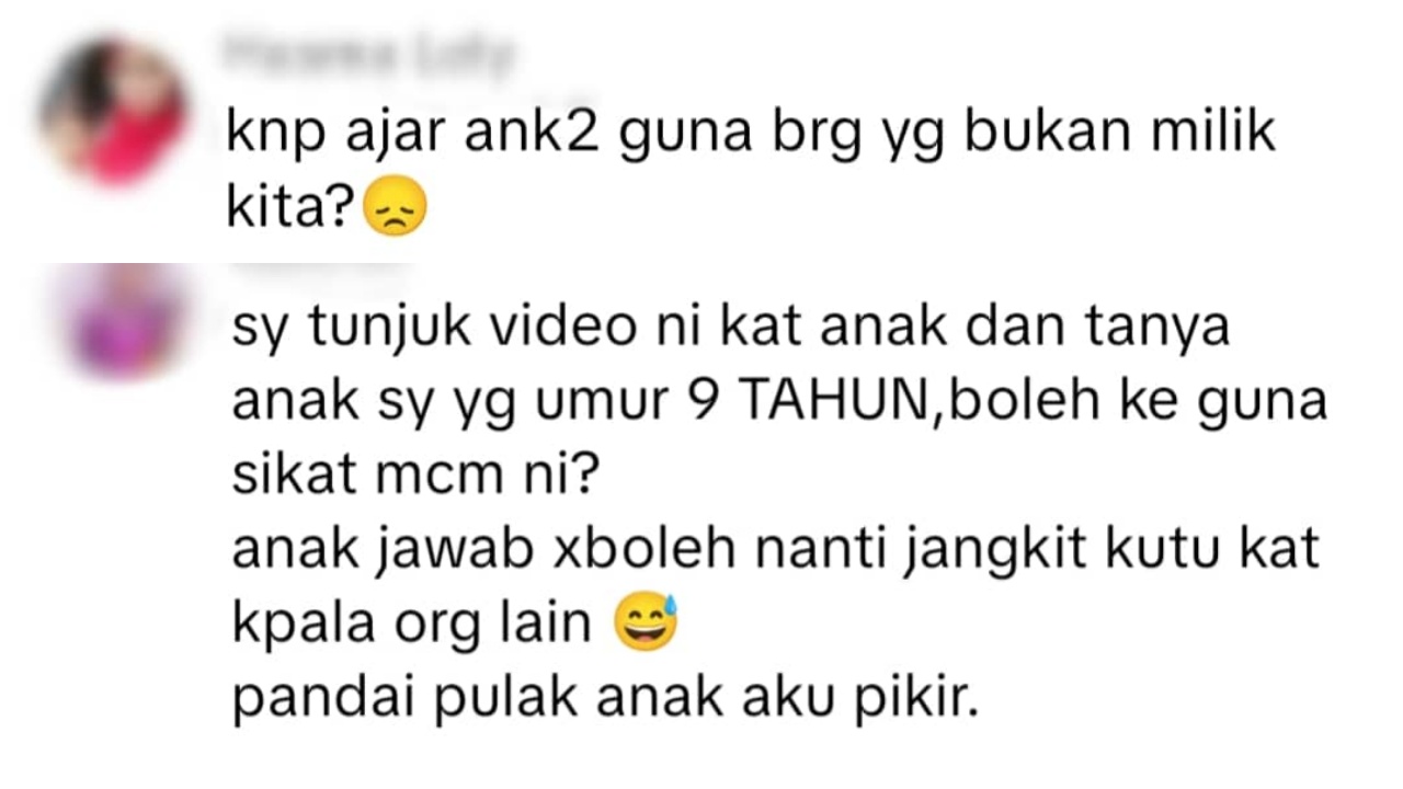 “I showed this video to my 9-year-old and asked if it was okay to use the comb like that. My child said no, we might get lice from other people. Even my child knows better.”