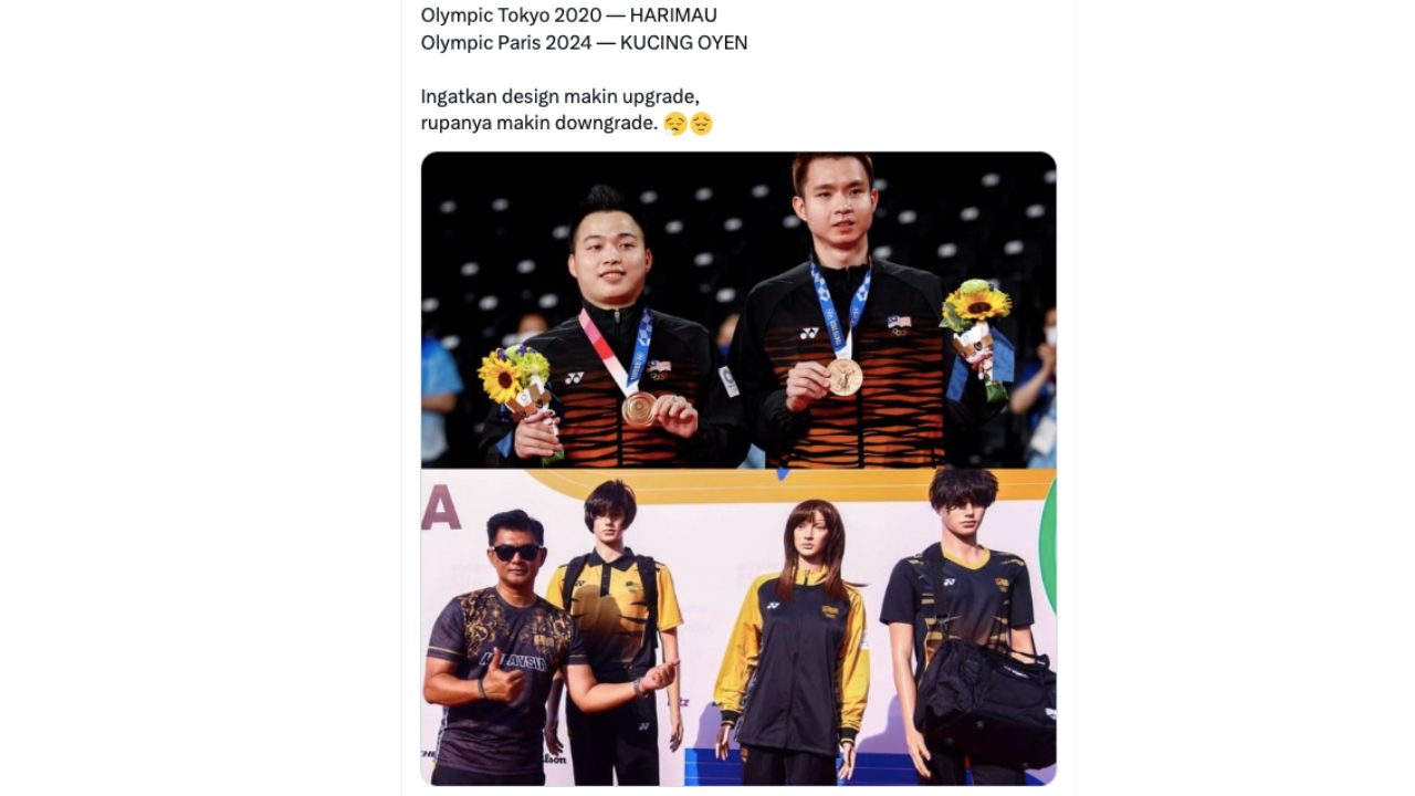 An infuriated X user commented, “The attire for the Tokyo 2020 Olympics was like a tiger (Malaysia’s national animal). The one for the Paris Olympics is like the Oyen cat (a charming stray cat which was first found at Zoo Negara). You would think that the designs would be upgraded, but instead, they have been downgraded.”
