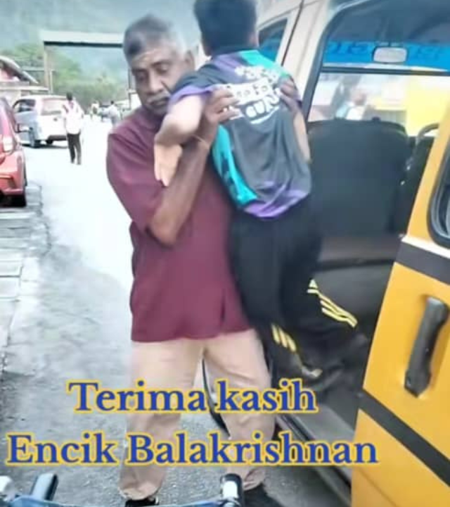 In a TikTok video shared by the PPKI programme of SMK Gurun, Kedah, the driver, known as Mr Balakrishnan, was seen carrying a male student off his van and placing him in a wheelchair.