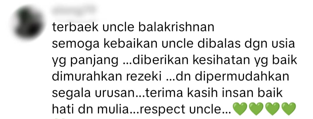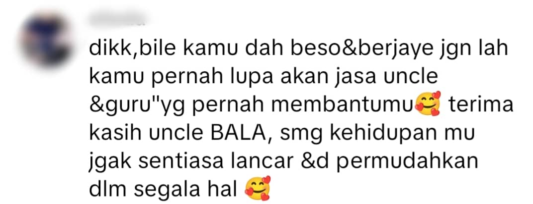 “Adik, when you grow up and become successful, never forget this uncle and your teachers who helped you. Thank you, Uncle Bala. May your life be filled with ease,” commented another.