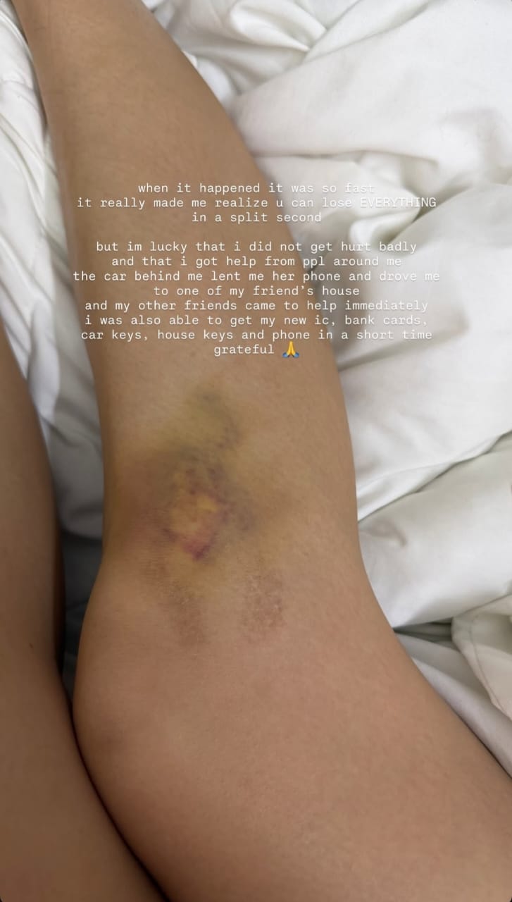 “Sharing this as a reminder to always be aware of your surroundings, don’t be so blur like me. Hope none of you ever experience this. Please be safe,” she wrote.