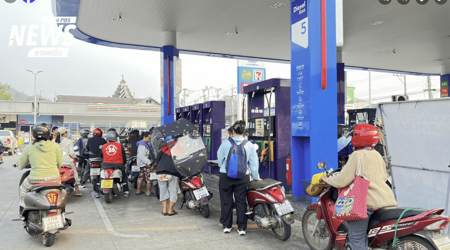 - Petrol stations are rationing fuel, limiting purchases to 500 baht for cars and 50 baht for motorcycles, with some stations running out of cheaper fuel options.