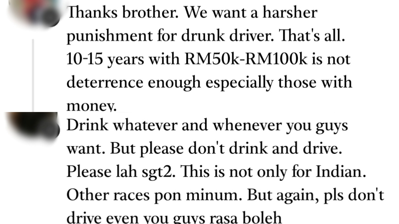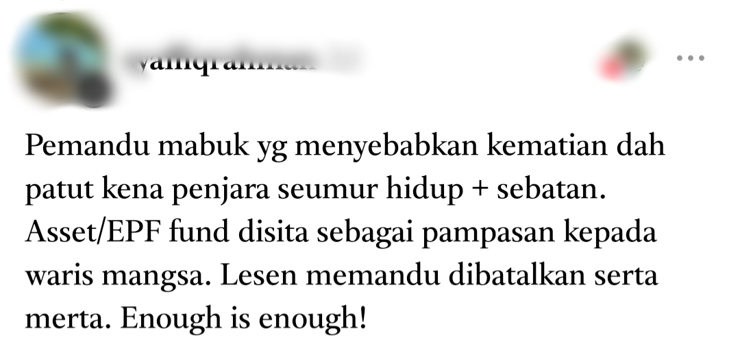 Echoing public sentiment, some Members of Parliament (MPs) have also urged the Malaysian government to impose harsher punishment, including reviewing the possibility of implementing the death penalty for drunk drivers who cause fatal accidents.