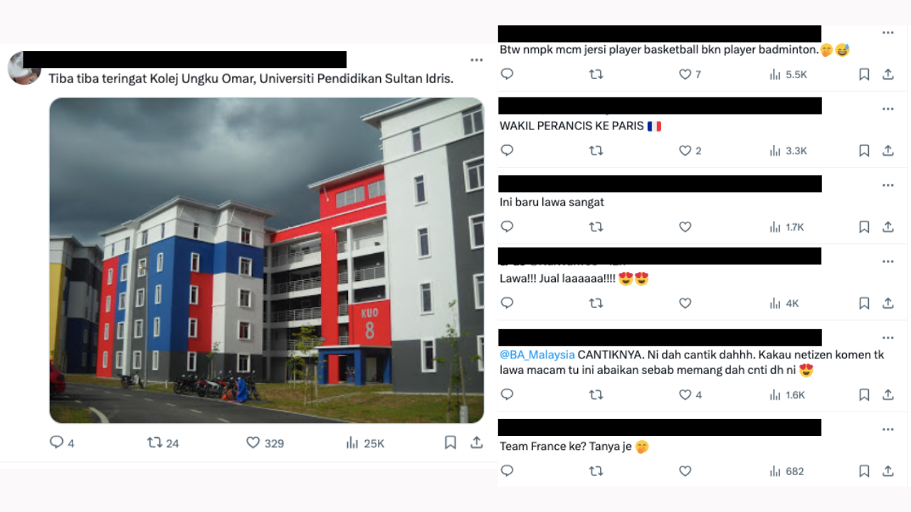 Netizens seemed to like the outfits, but many thought that they would be more suitable for the French team as the colours were red, white, and blue without yellow. One X user even compared the attire to the building of Kolej Ungku Omar, Universiti Pendidikan Sultan Idris.