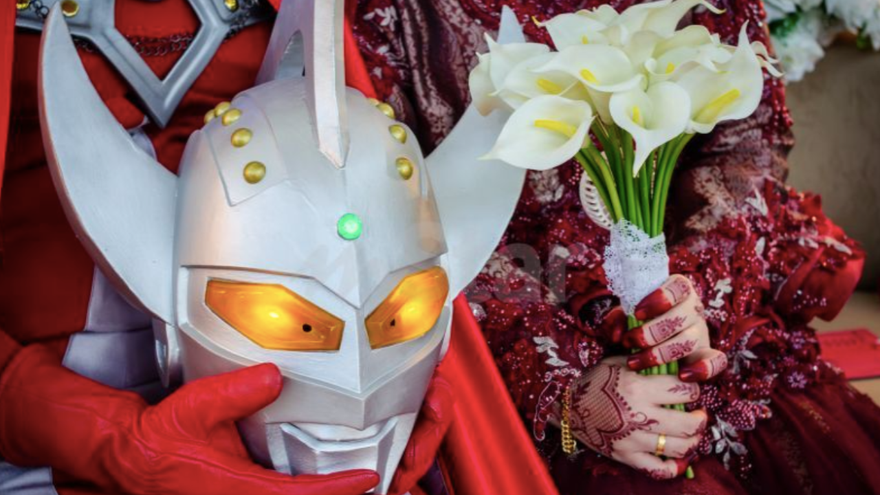 “I already promised my wife when I first got to know her,” said Zulhafizie, who hails from Miri, Sarawak. “I asked her, would you accept it if I became Ultraman? She said she would. So, I ordered the outfit when I got to know her to be worn for our wedding ceremony.” He explained that he wore traditional garments for the akad nikah ceremony and only wore the Ultraman costume for the persandingan ceremony.