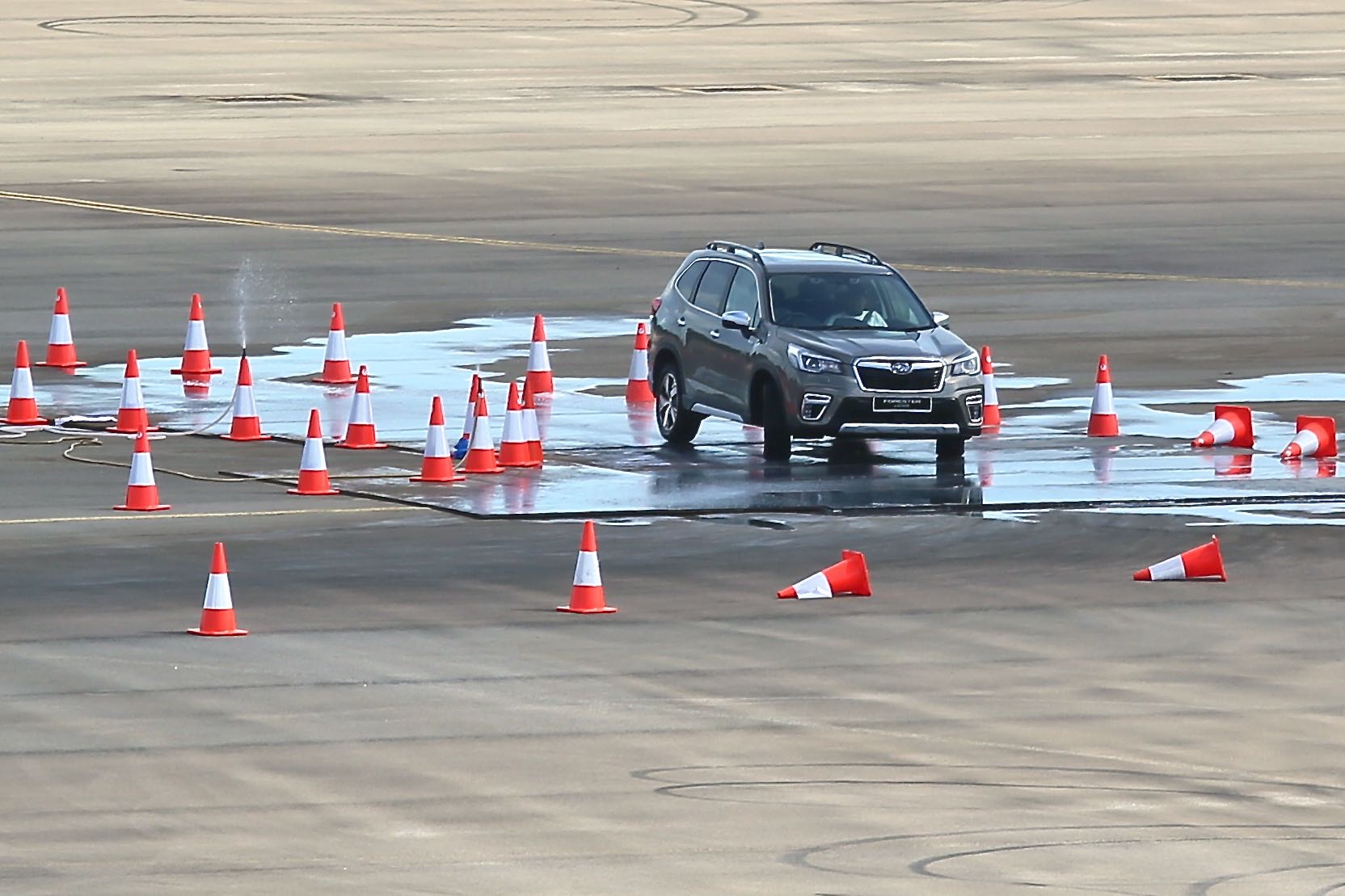 For the test drive, Subaru turned the giant carpark outside the Changi Exhibition Center -- which is located beside the Straits of Johor, by the way -- into a test track.