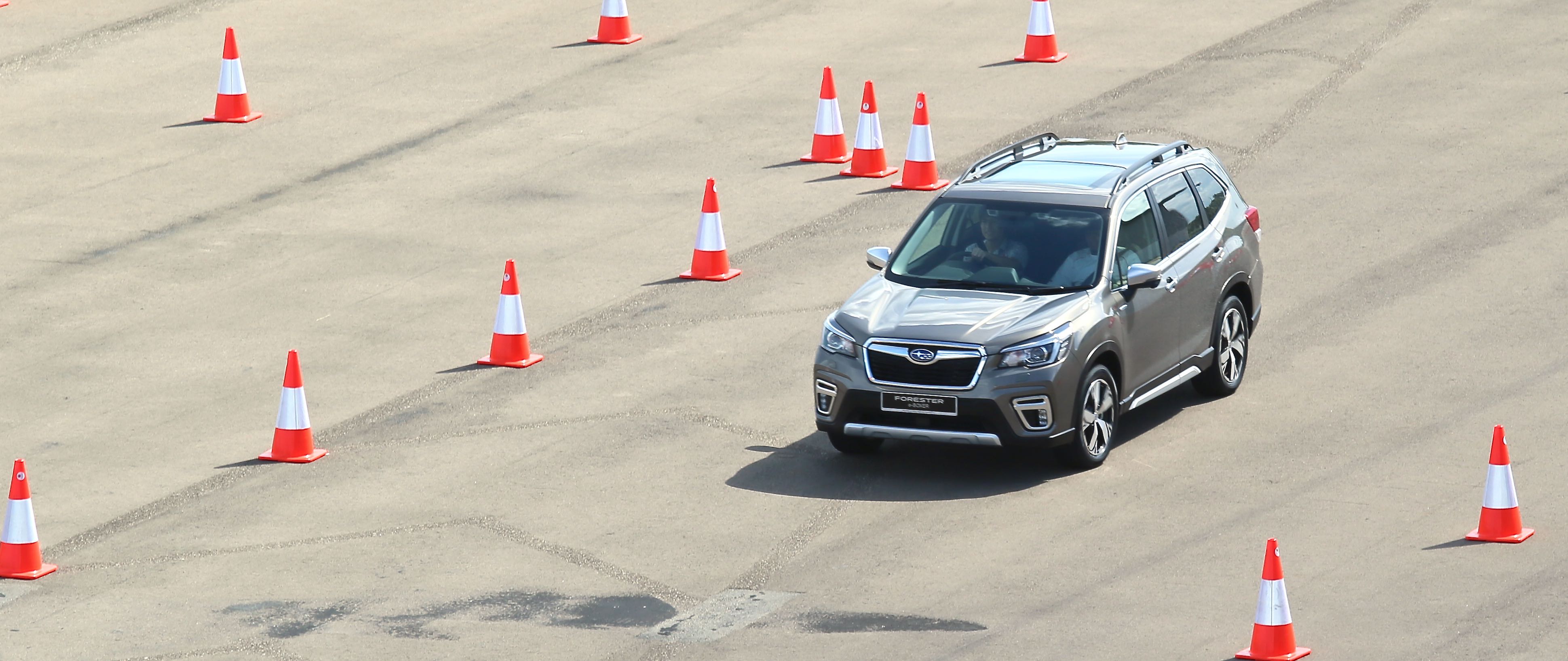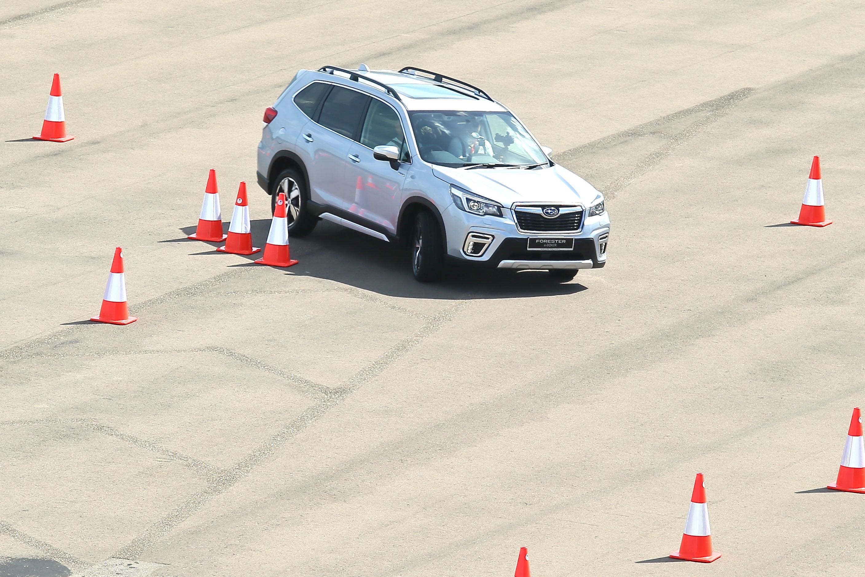 This test was where the e-Boxer stood out from its competition. Thanks to its Symmetrical All-Wheel Drive system, tackling the slalom section was a breeze. Compared to the other two cars, we felt more comfortable and safe going a little bit faster while swerving left and right at the slalom section because of its handling.