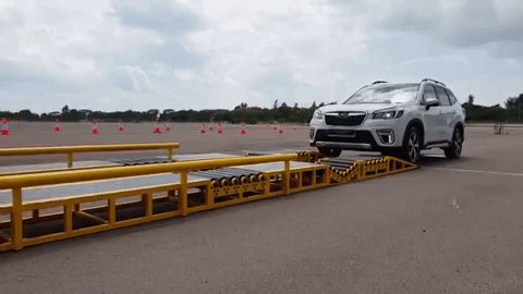 After a brief security briefing, we were given a demonstration of the power of the e-Boxer's all-wheel drive system. A Subaru instructor drove the e-Boxer onto a roller ramp, which was designed to simulate the loss of traction.