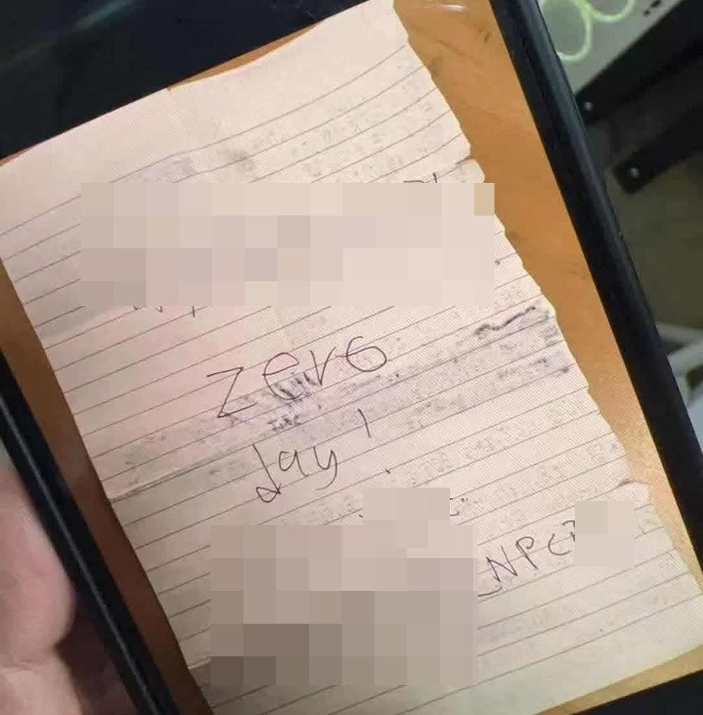 The letter, primarily written in Mandarin with several English phrases, contained disturbing content, including statements such as “The world is fake. I have won” and “Zero Day.”