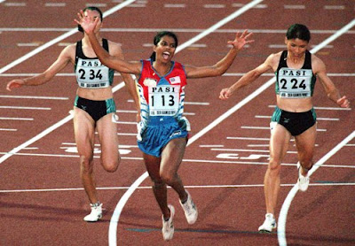 That’s because nobody has broken her 100-meter and 200-meter sprint record in all that time.