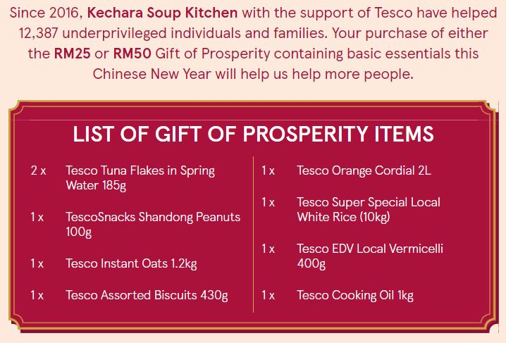 The Gift of Prosperity package actually costs RM60, but Tesco will be absorbing the price difference to make it more affordable for you to help out.