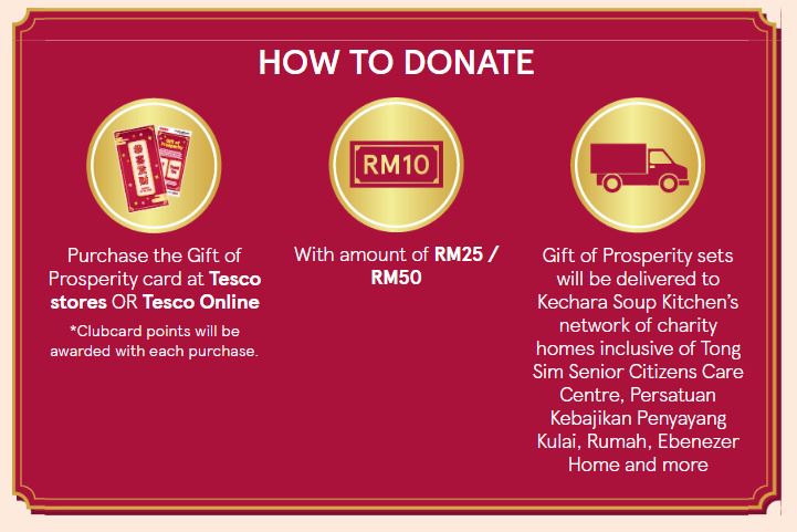 According to Tesco Malaysia, the Gift of Prosperity is represented in a gift card format designed to look like an ang pow packet.